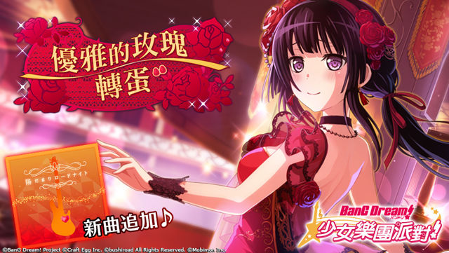 由移動怪獸代理、日本「武士道(Bushiroad)」和CraftEgg開發製作的手機音樂節奏遊戲《BanGDream!少女樂團派對》於23日推出期間限定「Don'tleaveme,Lisa!!!!」活動,同步推出「優雅的玫瑰」活動轉蛋,內向害羞的[詳細]