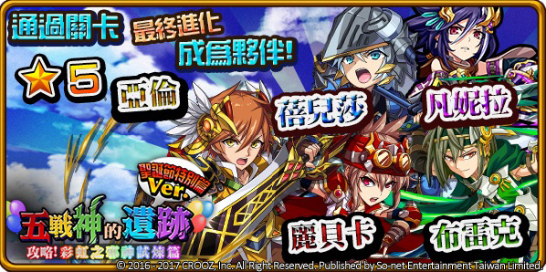 日本Sony集團旗下之網際網路服務事業So-net(台灣碩網網路娛樂公司,以下簡稱So-net)代理的日系排棋RPG《元素物語》為慶賀耶誕佳節即將到來,以閃耀燈飾點綴地圖場景,化身浪漫夜光城,讓玩家們一進入遊戲就能感受到[詳細]