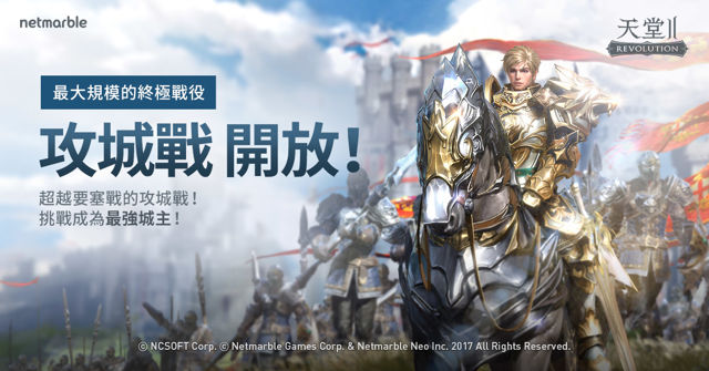 手機遊戲公司網石遊戲(NetmarbleGames)今(15)日宣布,旗下MMORPG手機遊戲《天堂2:革命》推出「攻城戰」玩法,為爭奪城堡而戰。另外,迎接聖誕節,官方也同步舉辦多項活動。[詳細]