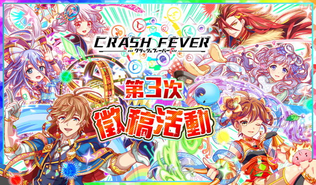 由負責手機遊戲的企劃、開發、營運、販售的遊戲開發商WonderPlanet(總公司:名古屋市、執行董事CEO:常川友樹、以下簡稱敝公司),將舉辦《CrashFever》第3次徵稿活動![詳細]