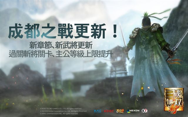 Nexon宣布《真三國無雙・斬》推出成都之戰大型更新,其中包含全新章節「成都之戰」以及推出初始5星武將「姜維」,同時新增過關斬將關卡至70層與主公等級上限開放至90級等多項更新內容,以下為本次更新內容詳細說明。[詳細]
