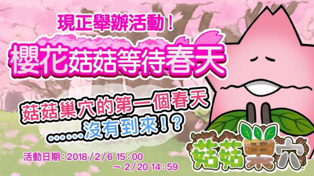 株式會社Beeworks旗下⼿機遊戲APP《菇菇巢穴》(Android/iOS版),即日起將於APP內開放下載「櫻花菇菇等待春天」活動。[詳細]