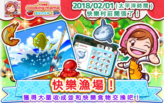 OFFICECREATECorp.於2018年2月1日起,在iOS/Android《料理媽媽cookingmama讓我們來煮!》加入全新遊戲「快樂漁場!」,另外還將進行大規模的內容更新。此外,配合情人節檔期,也會推出應景的情人節活動。[詳細]