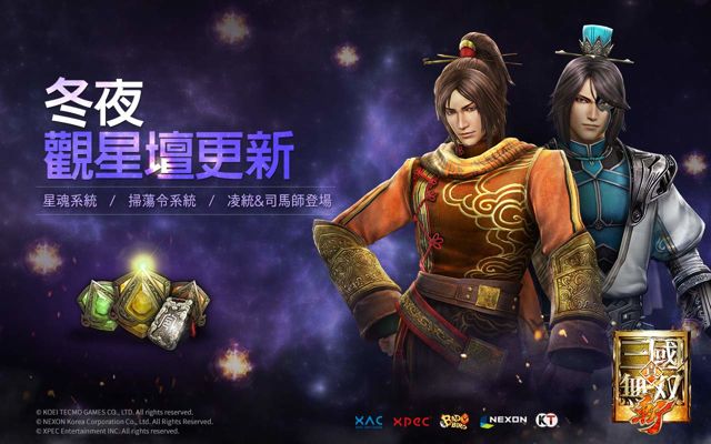 Nexon宣布旗下動作RPG手機遊戲《真三國無雙・斬》新增全新武將「司馬師」與「凌統」、武將星魂系統與關卡掃蕩功能等多樣的遊戲內容更新與優化,以下為本次更新內容詳細說明。[詳細]