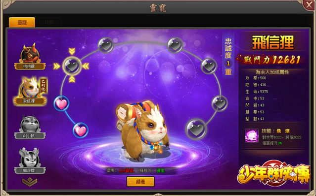 《少年群俠傳》開放「飛信狸」與「抱抱龍」新靈寵