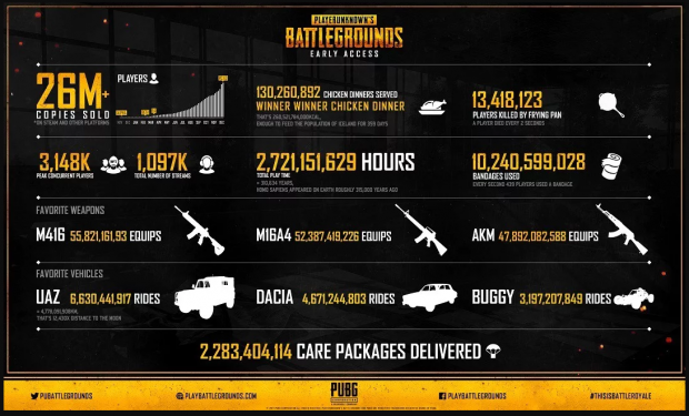 《絕地求生》曝光熱門武器、死於平底鍋等搶先體驗數據 玩家時數超過 27 億小時!