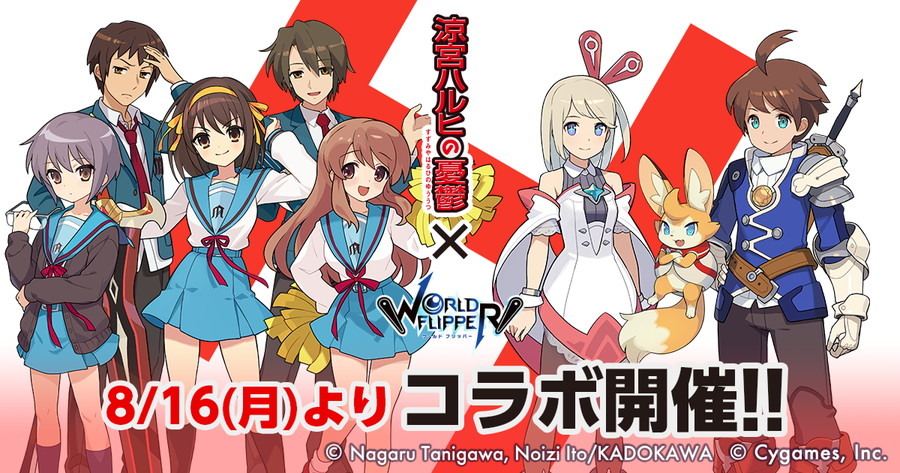 由日本遊戲開發商Cygames推出,旗下子公司CitailInc.開發的彈珠台玩法智慧型手機遊戲《彈射世界(暫譯,WORLDFLIPPER)》(iOS/Android)今日宣布,將於8月16日舉辦《涼宮春日的憂鬱》的合作活動。[詳細]