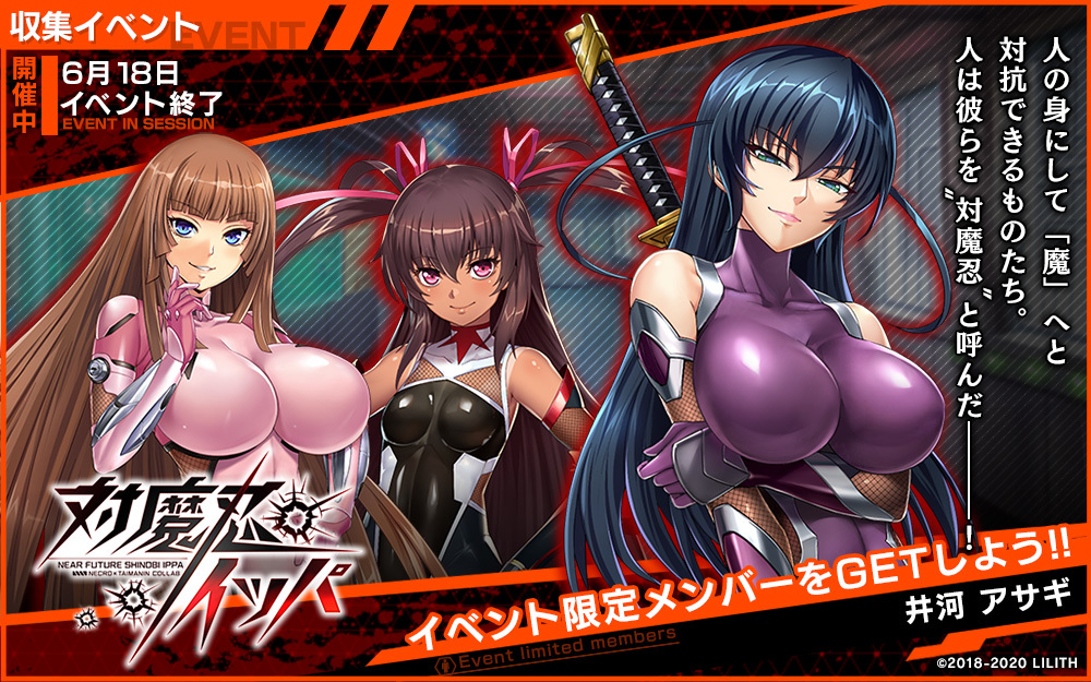 由日本Nitroplus與DMMGAMES(2020年4月更名為合同会社EXNOA)聯手推出的策略RPG《凍京NECRO自殺任務(トウキョウ・ネクロSUICIDEMISSION)》今(5)日與《對魔忍RPG》展開合作,推出活動期間限定活動「對魔忍一巴」[詳細]