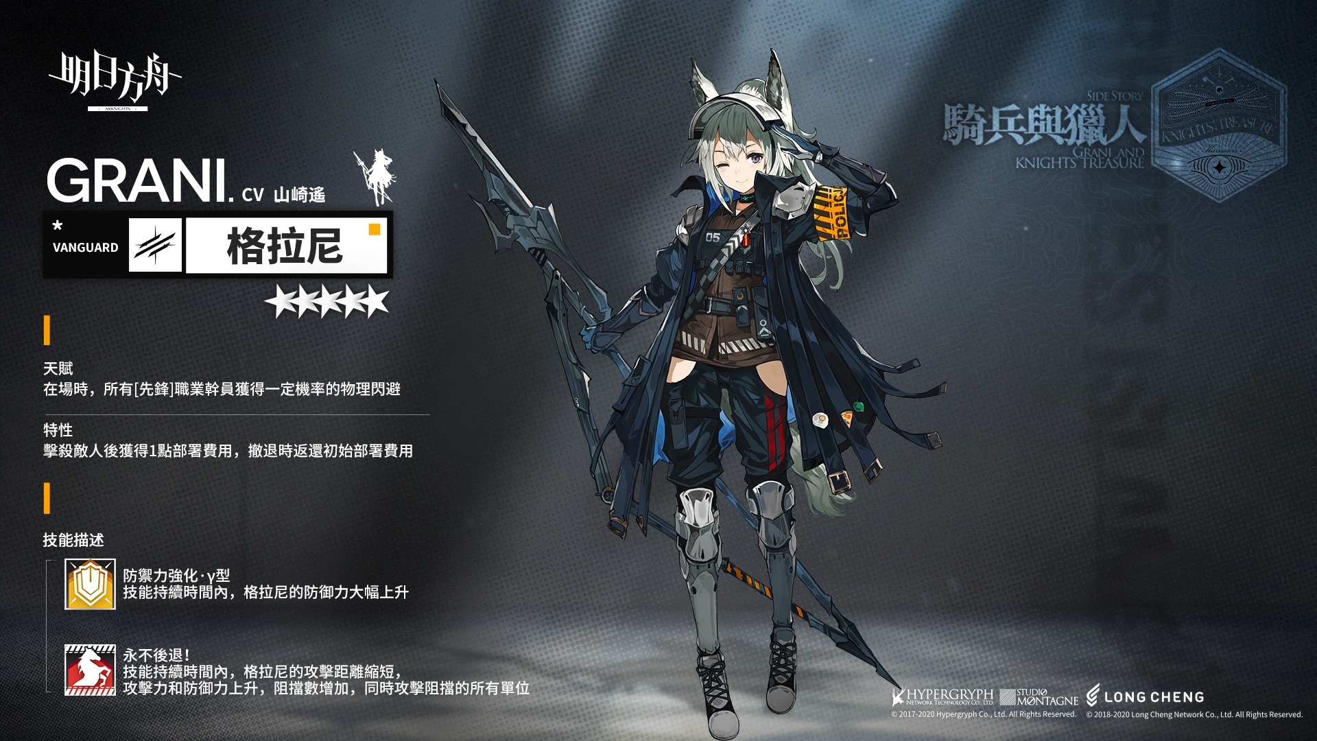 由龍成網路代理營運的新型態戰術攻防RPG《明日方舟》今(21)日釋出SIDESTORY「騎兵與獵人」活動預告,同步公開活動限定幹員「格拉尼」相關情報。此外,常駐【標準尋訪】也已在今日04:00更新。[詳細]