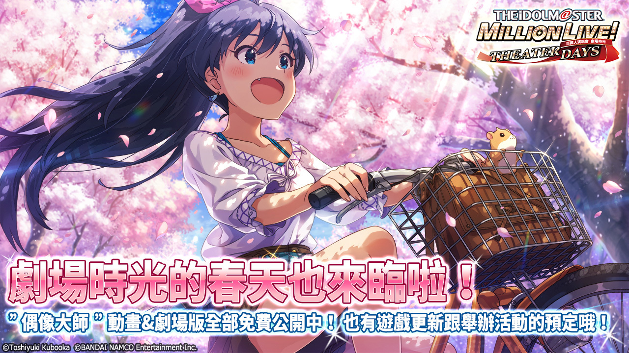萬代南夢宮娛樂股份有限公司宣布,AppStore,GooglePlay平台應用程式《偶像大師百萬人演唱會!劇場時光》(以下簡稱《劇場時光》)的春天來臨,動畫「THEIDOLM@STER」,劇場版「THEIDOLM@STER朝著輝煌的彼岸!」全[詳細]