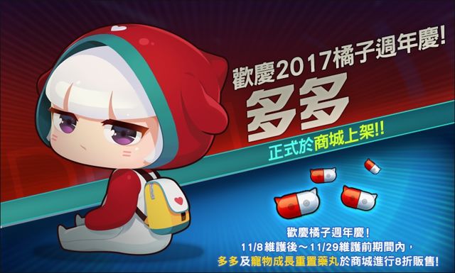遊戲橘子為迎接雙11購物節,攜手旗下多款遊戲推舉辦「甘心無『橘』限週年慶」活動,其中《天堂》推出屠龍紀元最終改版,預計11月29日也將有「遺忘之島」更新,而《跑跑卡丁車》將開放歡慶橘子週年慶的專屬任務、《絕[詳細]