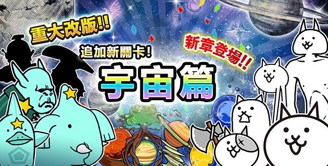 PONOS株式會社所開發的手機APP遊戲《貓咪大戰爭》現在已經推出最新版本。新版本6.5中加追加新地圖「宇宙篇」以及期間限定稀有轉蛋「古靈精怪元素小精靈」,詳情請參考以下報導。[詳細]