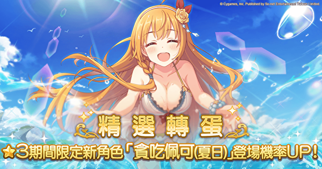 日本Sony企業在台分公司So-net旗下代理的日本動漫手機遊戲《超異域公主連結☆Re:Dive》近日宣布,將於11月15日(四)16:00至11月30日(五)15:59推出精選轉蛋,本期精選轉蛋機率提升角色為期間限定角色「★3貪吃佩[詳細]