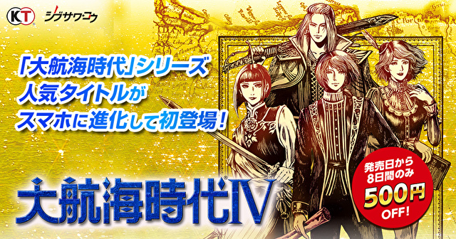 KOEITECMOGAMES今日宣布,將於2018年12月13日推出《大航海時代IV》(iOS/Android),預定售價為1990日圓。不過官方表示,《大航海時代IV》為紀念發售,預計將自發售起的8日內以特價500日圓,也就是1400日圓的價格販售[詳細]
