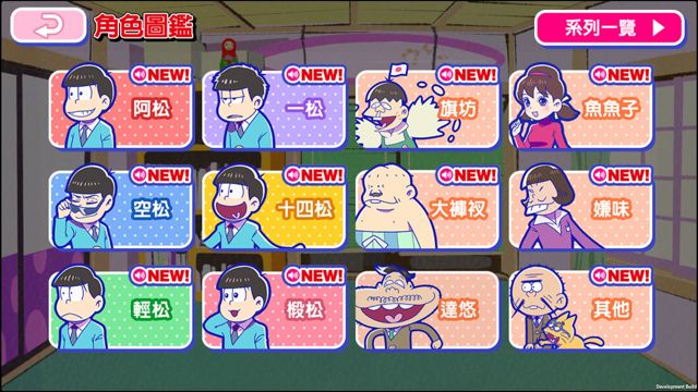 由avexpictures株式會社製作、改編自日本熱門電視動畫《阿松》(2015年10月開播)的智慧型手機專用遊戲應用軟體《阿松私房錢大戰~尼特攻防戰~》的繁體中文版已開始發布。[詳細]