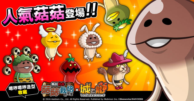 由移動怪獸代理、日本Asobism旗下森山工作室製作的對戰塔防手機遊戲《城與龍》營運團隊宣布與《觸摸偵探菇菇栽培研究室》連動合作開跑,人氣角色「菇菇」各式造型將於《城與龍》中登場! 「菇菇」為《觸碰偵[詳細]