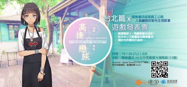 踢歐哎哎實驗室(Toii)、高雄捷運以及希萌創意合作發行的《高捷戀旅2》今(18)日宣布高雄篇開啟,九月中台北篇、日本福岡的博多運河城篇也已經全線開放。[詳細]