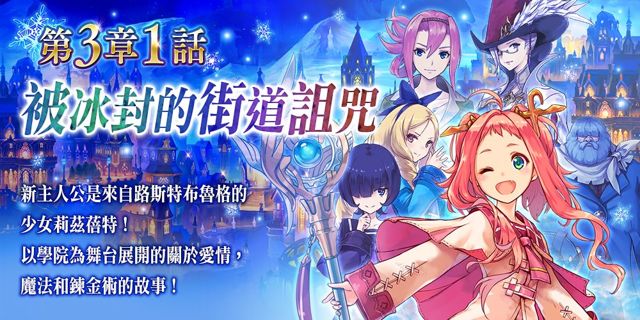 由DeNA代理的日製3D戰棋RPG手機遊戲《為了誰的鍊金術師》繁體中文版,於今日進行改版,正式開放第三章的故事,此篇章節以來自路斯特布魯格的少女【莉茲蓓特】為主人公,描述著以學院為舞台而展開的關於愛情、魔法與鍊[詳細]