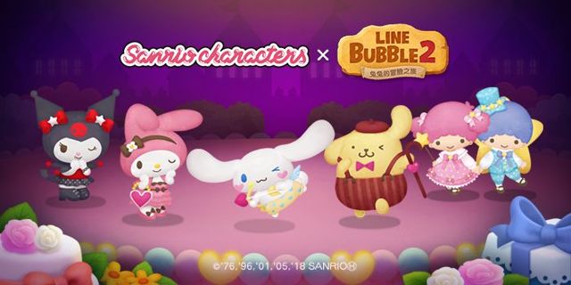 LINEGAME旗下的泡泡射擊遊戲《LINEBubble2》(支援iPhone、Android/免費),上線三週年,特與《三麗鷗》的人氣角色展開三紀念活動,「美樂蒂」、「大耳狗喜拿」、「布丁狗」等將現身在遊戲中,與玩家們一起射擊泡泡[詳細]