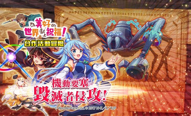 WonderPlanet旗下智慧型手機遊戲《CrashFever》台灣・香港・澳門版,公布確定於2018年3月16日與《為美好的世界獻上祝福!》舉辦全新合作活動。[詳細]