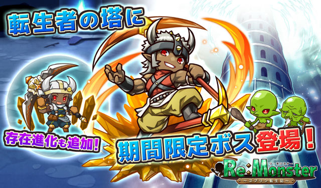 AlphaGamesInc.製作的正統即時對戰RPG手機遊戲《Re:Monster~哥布林轉生記~》正在舉行能夠獲得玩家新「存在進化」的轉生者之塔活動,有機會獲得限定戰鬥個體的「疾風絕巧!春風扭蛋」也同時實施中。[詳細]