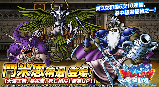移動怪獸代理SQUAREENIXRPG《勇者鬥惡龍怪物仙境SUPERLIGHT》今(7)日宣布,將推出魔法地圖抽選,鬥米恩精選登場「大海王者、暴風鴉、死亡陷阱」機率UP,並同時追加「海王神、暴風鴉、死亡陷阱」的新生轉生。培育活[詳細]