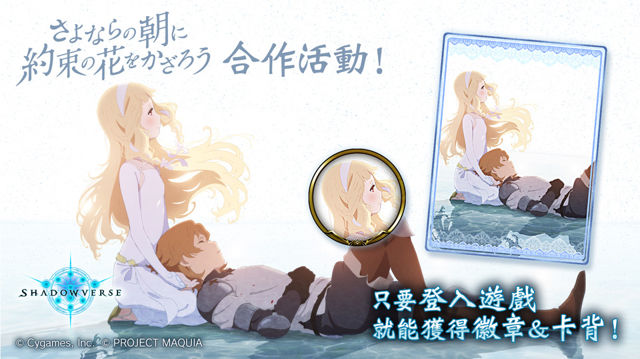 日本Cygames推出的卡牌對戰遊戲《闇影詩章Shadowverse》宣布,為記念電影《道別的早晨就用約定之花點綴吧(さよならの朝に約束の花をかざろう)》在日本上映,將從2月24日起舉辦合作活動。[詳細]